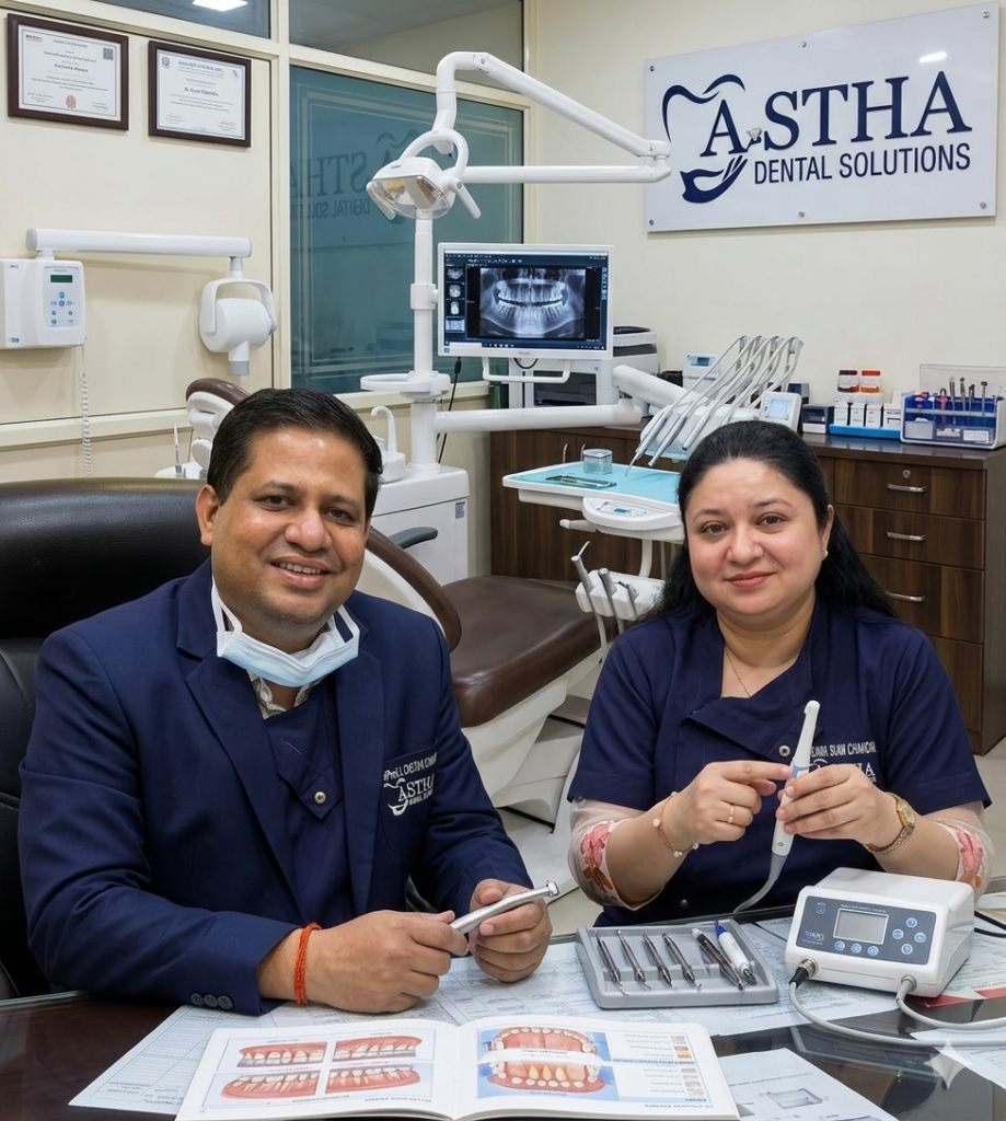 Astha Dental Solutions is a multi-specialty dental clinic located in Gomti Nagar, Lucknow, providing advanced dental care with a focus on patient comfort and long-lasting results. Established in 2007 and led by Prof. Chetan Chandra and Prof. Sumi Chandra, our clinic offers a wide range of treatments including dental implants, smile design, restorative dentistry and preventive care. Using modern technology and evidence-based dentistry, our team ensures that every patient receives personalized treatment plans designed to restore healthy and confident smiles