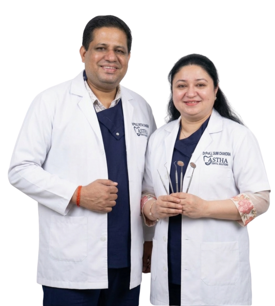 Astha Dental Solutions is a trusted multi-specialty dental clinic located in Gomti Nagar, Lucknow. Established in 2007, the clinic is led by experienced specialists Prof. Chetan Chandra and Prof. Sumi Chandra, known for their expertise in implantology and prosthodontics.